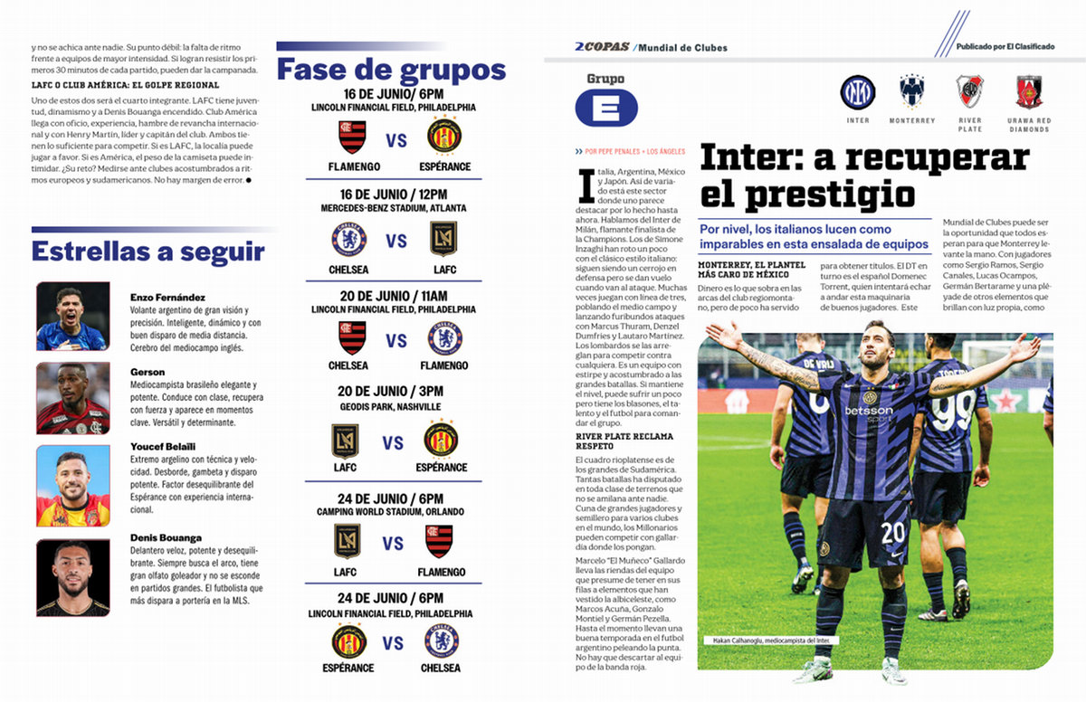Italia, Argentina, México y Japón. Así de variado está este sector donde uno parece destacar por lo hecho hasta ahora. Hablamos del Inter de Milán, flamante finalista de la Champions. Los de Simone Inzaghi han roto un poco con el clásico estilo italiano: siguen siendo un cerrojo en defensa pero se dan vuelo cuando van al ataque. Muchas veces juegan con línea de tres, poblando el medio campo y lanzando furibundos ataques con Marcus Thuram, Denzel Dumfries y Lautaro Martínez. Los lombardos se las arreglan para competir contra cualquiera. Es un equipo con estirpe y acostumbrado a las grandes batallas. Si mantiene el nivel, puede sufrir un poco pero tiene los blasones, el talento y el futbol para comandar el grupo.