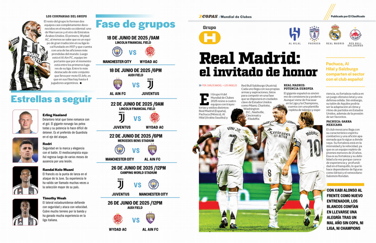 El resto del grupo lo forman dos equipos casi completamente deconocidos en el mundo occidental: uno de Marruecos y el otro de Emiratos Árabes Unidos. El primero, Wydad AC, al menos se sabe que es un equipo de gran tradicción en su liga local fundado en 1937 y que cuenta con una de las aficiones más prendidas del mundo. Luego está el Al Ain FC, equipo importante que por el momento está entre los primeros lugares de su liga. Entre lo más destacado de este conjunto que lleva por mote El Jefe, es que en sus filas hay hasta 4 jugadores argentinos. ●