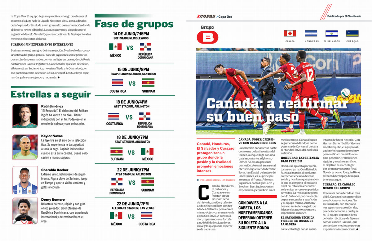 Canadá, Honduras, El Salvador y Curazao se enfrentan en un Grupo B lleno de historia, pasión y talento. Cada selección llega con realidades distintas, pero con el mismo objetivo: avanzar en la Copa Oro 2025. A continuación, repasamos sus fortalezas, debilidades, jugadores clave y lo que puede esperarse de cada una. |