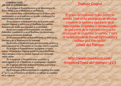 El grupo ha realizado todos juntos la revista. Gleb se ha encargado de diseñar, construir la revista y una parte de la información. Valentina se ha encargado de una parte de la información y se ha encargado de organizar la revista. Y Vero se ha encargado de buscar información y realizar una conclusión.