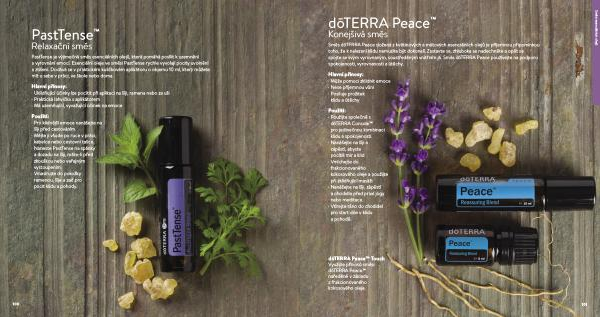 Směs dōTERRA Peace složená z květinových a mátových esenciálních olejů je příjemnou připomínkou toho , že k nalezení klidu nemusíte být dokonalí . Zastavte se , zhluboka se nadechněte a opět se spojte se svým vyrovnaným , soustředěným vnitřním já . Směs dōTERRA Peace používejte na podporu spokojenosti , vyrovnanosti a útěchy .