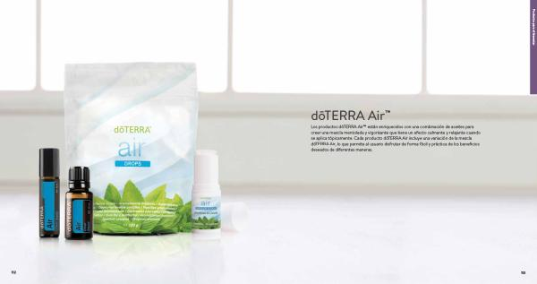 Los productos dōTERRA Air™ están enriquecidos con una combinación de aceites para crear una mezcla mentolada y vigorizante que tiene un efecto calmante y relajante cuando se aplica tópicamente . Cada producto dōTERRA Air incluye una variación de la mezcla dōTERRA Air , lo que permite al usuario disfrutar de forma fácil y práctica de los beneficios deseados de diferentes maneras .