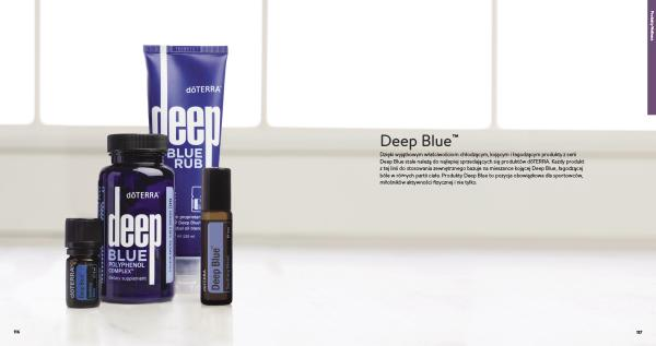 Dzięki wyjątkowym właściwościom chłodzącym , kojącym i łagodzącym produkty z serii Deep Blue stale należą do najlepiej sprzedających się produktów dōTERRA . Każdy produkt z tej linii do stosowania zewnętrznego bazuje na mieszance kojącej Deep Blue , łagodzącej bóle w różnych partii ciała . Produkty Deep Blue to pozycja obowiązkowa dla sportowców , miłośników aktywności fizycznej i nie tylko .