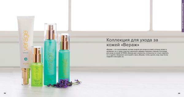 « Вераж » — это эксклюзивная система средств для ухода за кожей , которые питают и увлажняют ее , а также помогают уменьшить видимые признаки старения . Коллекция для ухода за кожей dōTERRA « Вераж » дает результаты , которые вы не только заметите , но и ощутите . Ежедневно используйте смесь « Вераж », чтобы сделать кожу лица более гладкой и омолодить ее .