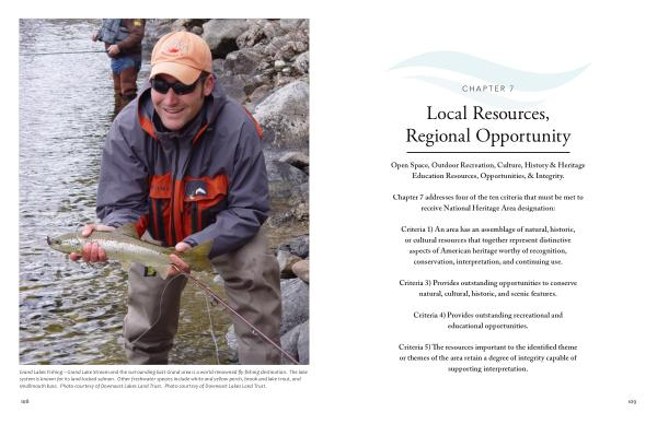 Grand Lakes Fishing – Grand Lake Stream and the surrounding East Grand area is a world-renowned fly-fishing destination . The lake system is known for its land-locked salmon . Other freshwater species include white and yellow perch , brook and lake trout , and smallmouth bass . Photo courtesy of Downeast Lakes Land Trust . Photo courtesy of Downeast Lakes Land Trust .