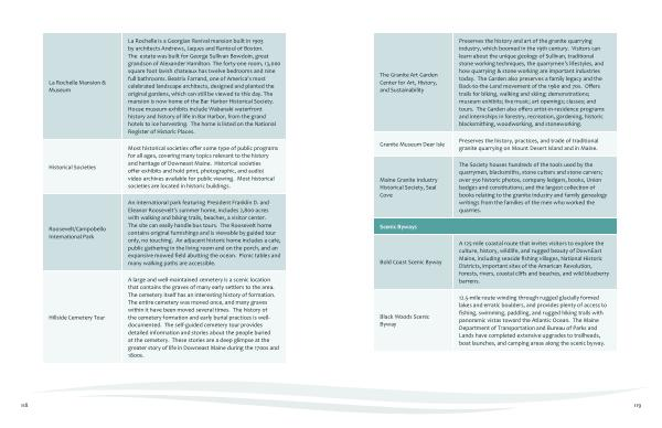 A 125-mile coastal route that invites visitors to explore the culture , history , wildlife , and rugged beauty of DownEast Maine , including seaside fishing villages , National Historic Districts , important sites of the American Revolution , forests , rivers , coastal cliffs and beaches , and wild blueberry barrens .