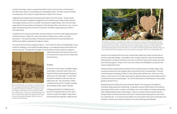 Abandoned quarries still dot the coast of Downeast Maine . A few are open to the public for swimming , hiking , enjoyment , and learning . Two granite museums tell the history of the industry . A growing number of artists , sculptors , and builders carry on the tradition of working with granite , often utilizing traditional tools and techniques . Some even reside in former industrial quarries … during the back to the land movement of the 1970 ’ s many decommissioned quarries were turned into residential sites . In several cases the children who were raised in those quarry landscapes serve as leaders in the arts and continue to reside on and work with the granite landscape .