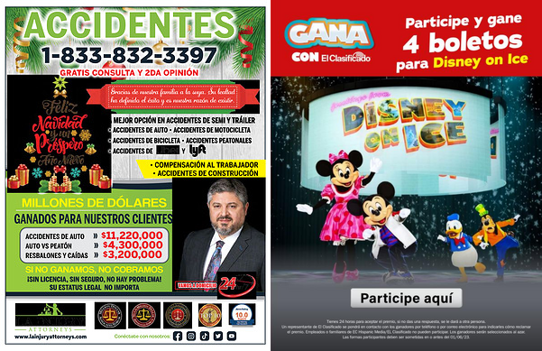 Tienes 24 horas para aceptar el premio , si no das una respuesta , se le dará a otra persona . Un representante de El Clasificado se pondrá en contacto con los ganadores por teléfono o por correo electrónico para indicarles cómo reclamar el premio . Empleados o familiares de EC Hispanic Media / EL Clasificado no pueden participar . Los ganadores serán seleccionados al azar . Las formas participantes deben ser sometidas en o antes del 01 / 06 / 23 .