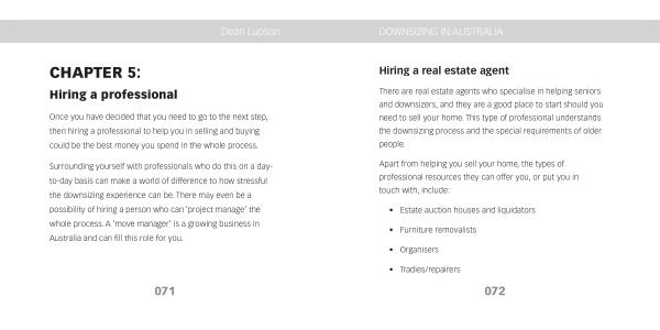 Surrounding yourself with professionals who do this on a dayto-day basis can make a world of difference to how stressful the downsizing experience can be . There may even be a possibility of hiring a person who can ‘ project manage ’ the whole process . A ‘ move manager ’ is a growing business in Australia and can fill this role for you .