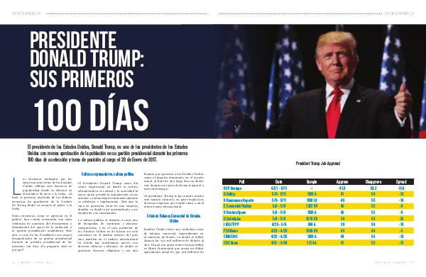 El presidente de los Estados Unidos, Donald Trump, es uno de los presidentes de los Estados Unidos con menos aprobación de la población en su gestión presidencial durante los primeros 100 días de su elección y toma de posición al cargo el 20 de Enero de 2017.