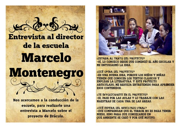 Nos acercamos a la conducción de la escuela, para realizarle una entrevista a Marcelo sobre el proyecto de Drácula.