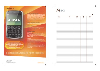 SERVIÇO SMS O SEU BANCO NA PONTA NA PONTA DOS DEDOS SERVIÇOS DE RECLAMAÇÕES E APOIO AO CLIENTE Tel.: 227 333 000 e-mail: apoioaocliente@bcinet.ao