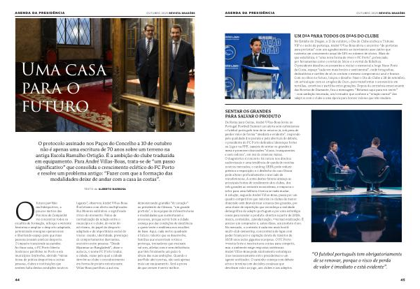 O protocolo assinado nos Paços do Concelho a 10 de outubro não é apenas uma escritura de 70 anos sobre um terreno na antiga Escola Ramalho Ortigão. É a ambição do clube traduzida em equipamento. Para André Villas-Boas, trata-se de“ um passo significativo” que consolida o crescimento eclético do FC Porto e resolve um problema antigo:“ Fazer com que a formação das modalidades deixe de andar com a casa às costas”.