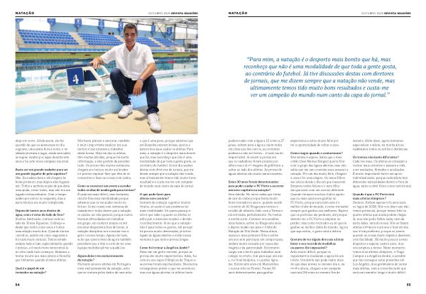 “ Para mim, a natação é o desporto mais bonito que há, mas reconheço que não é uma modalidade de que toda a gente gosta, ao contrário do futebol. Já tive discussões destas com diretores de jornais, que me dizem sempre que a natação não vende, mas ultimamente temos tido muito bons resultados e custa-me ver um campeão do mundo num canto da capa do jornal.”