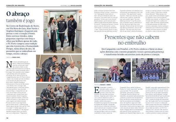 DEZEMBRO 2025 REVISTA DRAGÕES poder continuar a proporcionar-lhes momentos felizes”, porque – acrescentou – ver“ muita gente a lutar todos os dias” reforça a vontade de ajudar e de aproveitar o que tantas vezes se toma por garantido:“ A vida, que é muito bonita”. Para Eustáquio, que já tinha visitado o CRN na quadra festiva de 2023, regressar foi natural.“ Quando me fizeram o convite para vir este ano não hesitei”, contou, sublinhando o contraste que dá sentido a tudo:“ Custa-nos muito pouco vir aqui, mas para eles faz uma diferença enorme”.