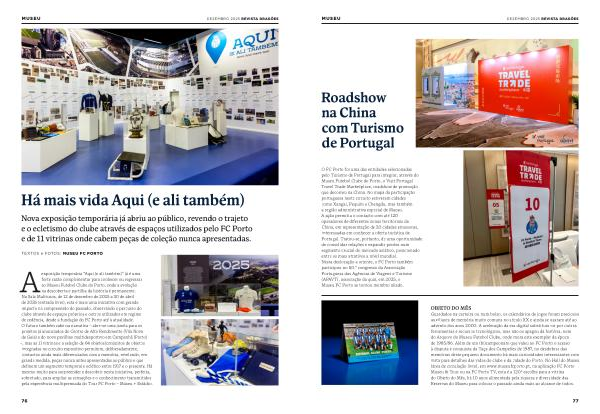 O FC Porto foi uma das entidades selecionadas pelo Turismo de Portugal para integrar, através do Museu Futebol Clube do Porto, o Visit Portugal Travel Trade Marketplace, roadshow de promoção que decorreu na China. No mapa da participação portuguesa neste circuito estiveram cidades como Xangai, Pequim e Chengdu, mas também a região administrativa especial de Macau. A ação permitiu o contacto com até 120 operadores de diferentes zonas territoriais da China, em representação de 20 cidades emissoras, interessadas em conhecer a oferta turística de Portugal. Tratou-se, portanto, de uma oportunidade de consolidar relações e expandir pontes num segmento crucial do mercado asiático, posicionado entre os mais atrativos a nível mundial. Nesta deslocação a oriente, o FC Porto também participou no 50.º congresso da Associação Portuguesa das Agências de Viagens e Turismo( APAVT), associação da qual, em 2025, o Museu FC Porto se tornou membro aliado.