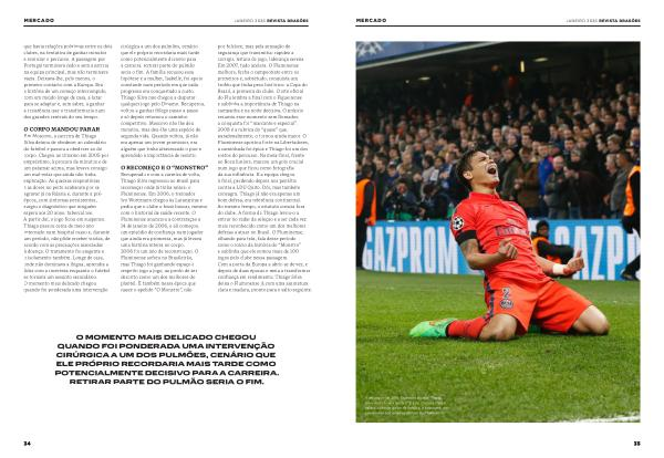 O CORPO MANDOU PARAR Em Moscovo, a carreira de Thiago Silva deixou de obedecer ao calendário do futebol e passou a obedecer ao do corpo. Chegou ao Dínamo em 2005 por empréstimo, à procura de minutos e de um patamar acima, mas levava consigo um mal-estar que ainda não tinha explicação. As queixas respiratórias e as dores no peito acabaram por se agravar já na Rússia e, durante a préépoca, com sintomas persistentes, surgiu o diagnóstico que ninguém espera aos 20 anos: tuberculose. A partir daí, o jogo ficou em suspenso. Thiago passou cerca de meio ano internado num hospital russo e, durante um período, não pôde receber visitas, de acordo com as precauções associadas à doença. O tratamento foi exigente e o isolamento também. Longe de casa, onde não dominava a língua, aprendia a lidar com a incerteza enquanto o futebol se tornava um assunto secundário. O momento mais delicado chegou quando foi ponderada uma intervenção cirúrgica a um dos pulmões, cenário que ele próprio recordaria mais tarde como potencialmente decisivo para a carreira. Retirar parte do pulmão seria o fim. A família recusou essa hipótese e a mulher, Isabelle, foi apoio constante num período em que cada progresso era conquistado a custo. Thiago Silva não chegou a disputar qualquer jogo pelo Dínamo. Recuperou, voltou a ganhar fôlego passo a passo e só depois retomou o caminho competitivo. Moscovo não lhe deu minutos, mas deu-lhe uma espécie de segunda vida. Quando voltou, já não era apenas um jovem promissor, era alguém que tinha atravessado o pior e aprendido a importância de resistir.
