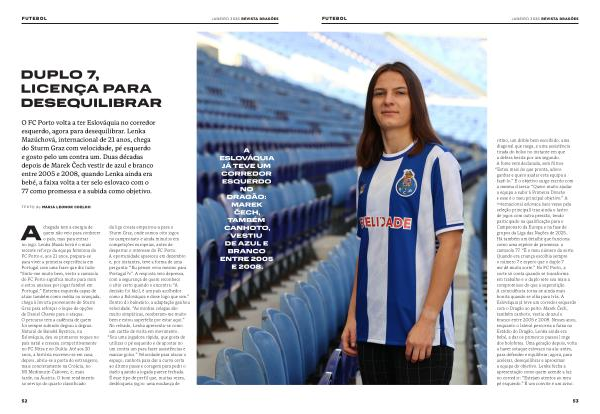 O FC Porto volta a ter Eslováquia no corredor esquerdo, agora para desequilibrar. Lenka Mazúchová, internacional de 21 anos, chega do Sturm Graz com velocidade, pé esquerdo e gosto pelo um contra um. Duas décadas depois de Marek Čech vestir de azul e branco entre 2005 e 2008, quando Lenka ainda era bebé, a faixa volta a ter selo eslovaco com o 77 como promessa e a subida como objetivo.