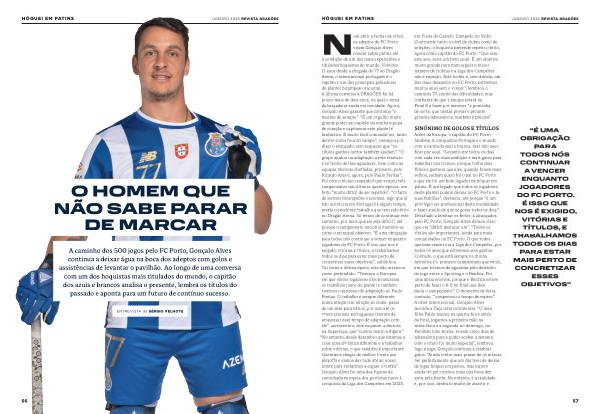 A caminho dos 500 jogos pelo FC Porto, Gonçalo Alves continua a deixar água na boca dos adeptos com golos e assistências de levantar o pavilhão. Ao longo de uma conversa com um dos hoquistas mais titulados do mundo, o capitão dos azuis e brancos analisa o presente, lembra os títulos do passado e aponta para um futuro de contínuo sucesso.