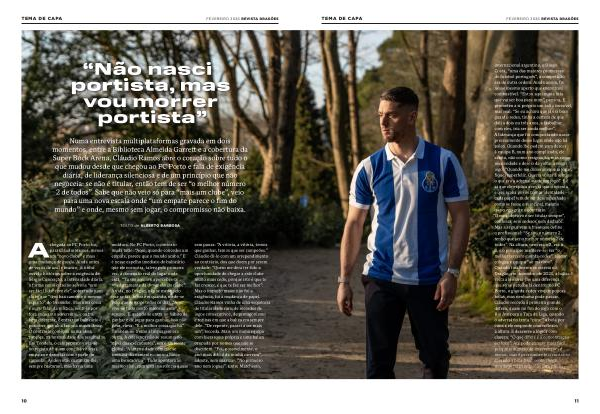internacional argentino, e Diogo Costa,“ uma das maiores promessas do futebol português”, a competição era de outra ordem. Ainda assim, foi nesse mesmo aperto que encontrou combustível.“ Estou aqui numa luta que vai ser boa para mim”, pensou. E prometeu a si próprio um salto invisível, mas real:“ Se eu achava que já era bom guarda-redes, tinha a certeza de que dali a dois ou três anos, a trabalhar com eles, iria ser ainda melhor”. A liderança que foi conquistando nasce precisamente desse lugar onde não há palco. Quando lhe pedem para descer à equipa B, num ano complicado, ele aceita, não como resignação, mas como necessidade e desejo de voltar a sentir jogo.“ Quando me disseram que ia jogar, fiquei superfeliz. Queria voltar a sentir o que era a adrenalina de um jogo”. E é aí que ele explica a regra que o orienta e que acaba por se tornar identidade – cada papel tem de ser desempenhado como se fosse o principal, mesmo que o ego grite o contrário.“ O meu objetivo é ser titular sempre”, confessa, sem rodeios nem disfarce. Mas a seguir vem a frase que define o profissional:“ Se sou o número 2, tenho que ser o melhor número 2 de todos”. Na altura, nem era o 2, era o 3, e o princípio manteve-se: ser“ o melhor terceiro guarda-redes”, ajudar colegas e equipa“ ao máximo”. Quando finalmente se estreia no Dragão, em dezembro de 2021, a baliza volta a lembrar-lhe uma diferença que só se percebe lá dentro: no FC Porto, o guarda-redes vive de poucas bolas, mas nenhuma pode passar. Cláudio recorda a primeira grande defesa, quase no fim do jogo com o Rio Ave para a Taça da Liga, quando o adversário tenta“ picar” a bola por cima e ele responde com reflexos à altura. E descreve a lógica com clareza:“ O que difere é a concentração e o foco”. Até pode parecer mais fácil, porque o número de intervenções é menor, mas é precisamente o contrário. Quando a bola finalmente chega, tem de estar pronto.“ Senão, não és