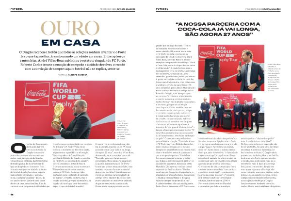 gerado por um jogo de cores.“ Temos as bancadas bem decoradas com o vosso símbolo. Há poucos locais onde o FC Porto permite o vermelho na decoração do estádio”, observou André Villas-Boas, antes de fechar a lista de exceções com precisão de catálogo:“ Um é a Coca-Cola, outro é a Super Bock e outro é a Fidelidade”. A piada foi leve, mas a mensagem foi séria: no Porto, a confiança não se decreta, conquista-se. Até o vermelho, quando entra, entra por mérito. A ponte entre clube e cidade foi uma das linhas mais fortes do dia, com Villas-Boas a lembrar o direito de superfície de 75 anos concedido pela Câmara Municipal do Porto sobre os terrenos da antiga Escola Ramalho Ortigão, uma base para que se continue“ a construir ecleticamente e a servir a cidade e a comunidade da melhor forma”. Não é detalhe burocrático, é um rumo, porque um clube que quer disputar títulos também deve ser ferramenta social, abrir portas, ocupar o território com propósito e devolver à cidade parte da energia que recebe. Se o troféu trouxe o mundo, Roberto Carlos trouxe a memória viva de quem o levantou. Villas-Boas agradeceu a presença de“ um grande ídolo de todos” e lançou a frase que atravessa gerações:“ O meu filho ainda não era nascido quando tu já fazias bananas invertidas na direção do golo”. O brasileiro respondeu com naturalidade e emoção.“ Na minha altura, o FC Porto jogava no Estádio das Antas, mas o clube continua a ser o mesmo. Sempre foi uma referência na minha vida”, disse o brasileiro, antes de confessar o que o tempo não gastou:“ Ainda hoje fico emocionado ao levantar o troféu que todas as seleções querem ganhar”. E quando lhe pediram a hierarquia entre Mundial e Champions, o mítico lateral esquerdo do Real foi direto:“ Ganhar uma Liga dos Campeões é importante, a Champions é uma referência, mas ganhar o Mundial representando o meu país vai estar sempre em primeiro plano”. A cidade também não quis ser figurante. Pedro Duarte descreveu o FC Porto como