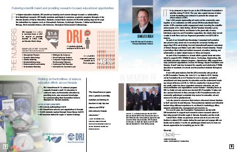 As part of the Foundation’ s outreach efforts, grants funds were also raised to support DRI’ s STEAM( Science, Technology, Engineering, Arts and Math) education outreach program— GreenPower. With support from many prominent organizations such as NV Energy, Keyser Foundation and Sempra, GreenPower has increased its capacity and is delivering STEAM education to hundreds of schools and thousands of students throughout Nevada.