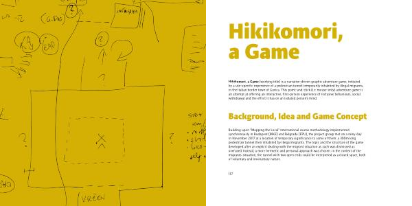 Hikikomori , a Game ( working title ) is a narrative-driven graphic adventure game , initiated by a site-specific experience of a pedestrian tunnel temporarily inhabited by illegal migrants , in the Italian border town of Gorica . This point-and-click ( i . e . mouse-only ) adventure game is an attempt at offering an interactive , first-person experience of reclusive behaviours , social withdrawal and the effect it has on an isolated person ’ s mind .