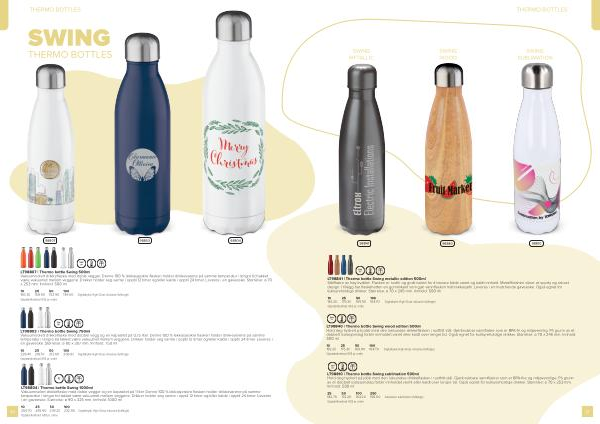 LT98807 | Thermo bottle Swing 500ml Vakuumisolert drikkeflaske med doble vegger. Denne 100 % lekkasjesikre flasken holder drikkevarene på samme temperatur i lengre tid takket være vakuumet mellom veggene. Drikker holder seg varme i opptil 12 timer og / eller kalde i opptil 24 timer. Leveres i en gaveeske. Størrelse: ø 70 x 253 mm. Innhold: 500 ml