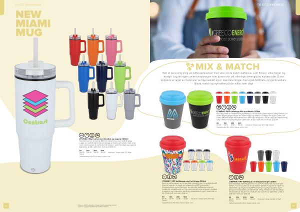 LT57004 | Miami-krus med håndtak og sugerør 800ml Miamikruset er et trendy 800 ml isolert krus med stilfullt preg. Laget av rustfritt stål med et belegg av resirkulert plast, med smal bunn som passer til de fleste bilholdere, samt håndtak og sugerør. Størrelse: ø 88 x 240 mm. Innhold: 800 ml