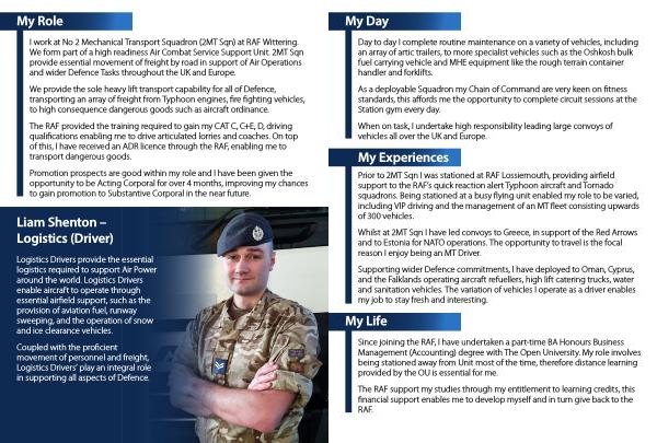 Supporting wider Defence commitments , I have deployed to Oman , Cyprus , and the Falklands operating aircraft refuellers , high lift catering trucks , water and sanitation vehicles . The variation of vehicles I operate as a driver enables my job to stay fresh and interesting .