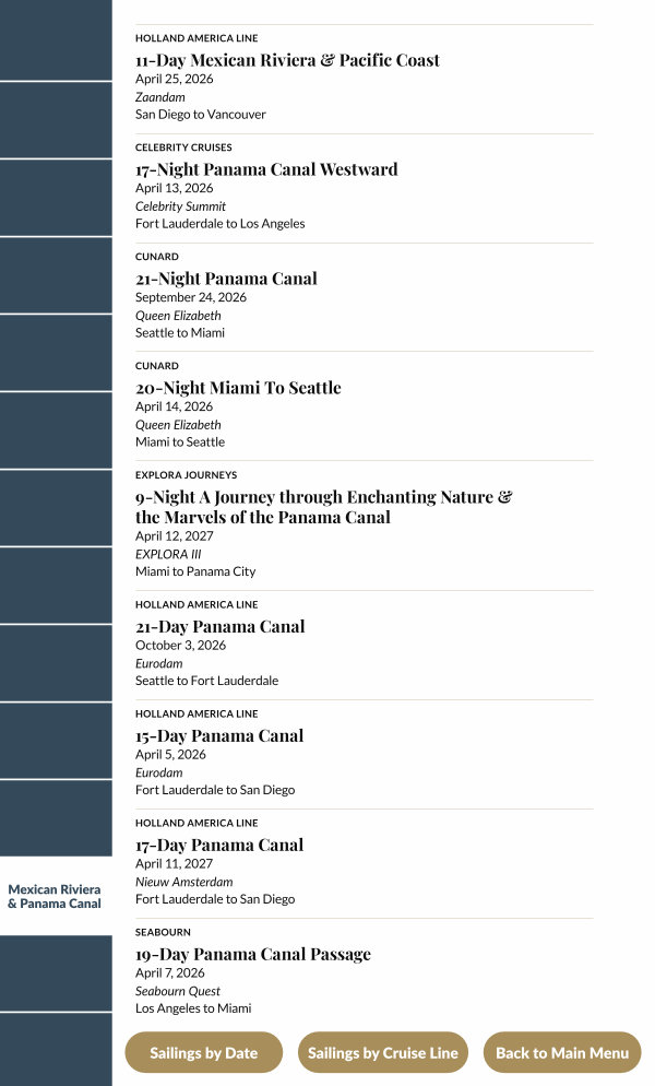 April 11, 2027 Nieuw Amsterdam Fort Lauderdale to San Diego
