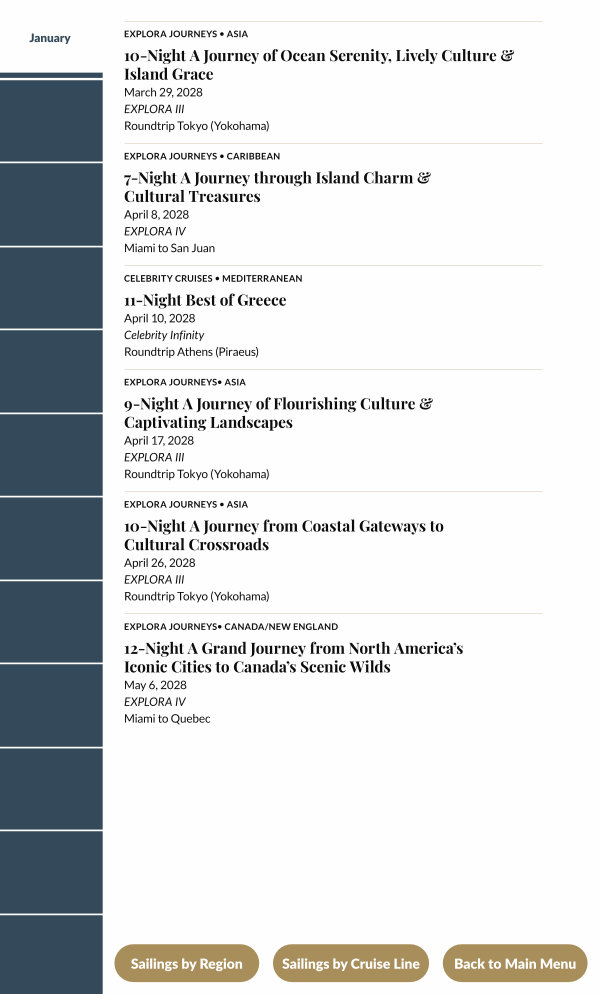 Sailings by Cruise Line |