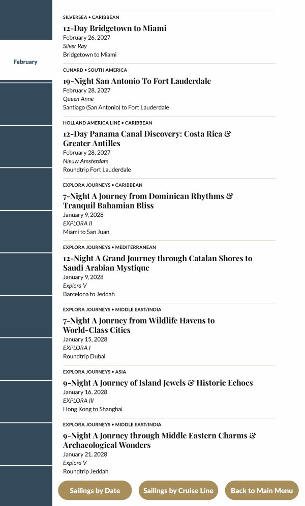 Sailings by Cruise Line