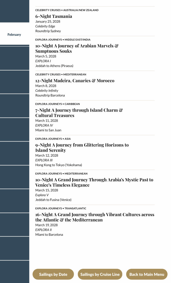Sailings by Cruise Line