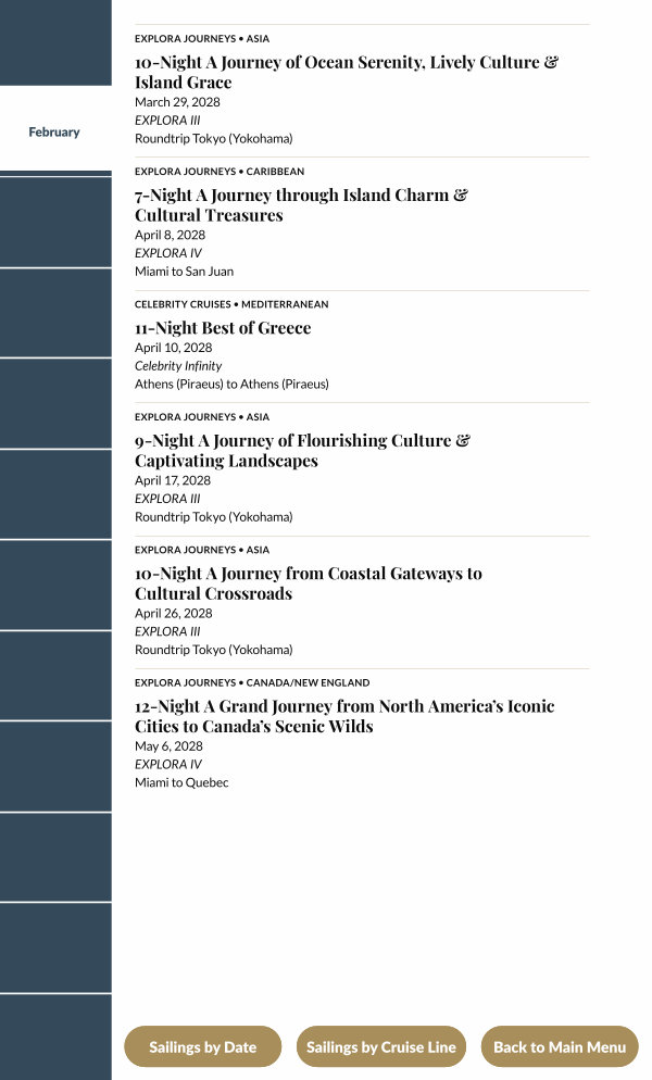 Sailings by Cruise Line