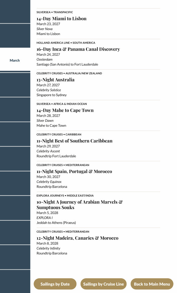 Sailings by Cruise Line