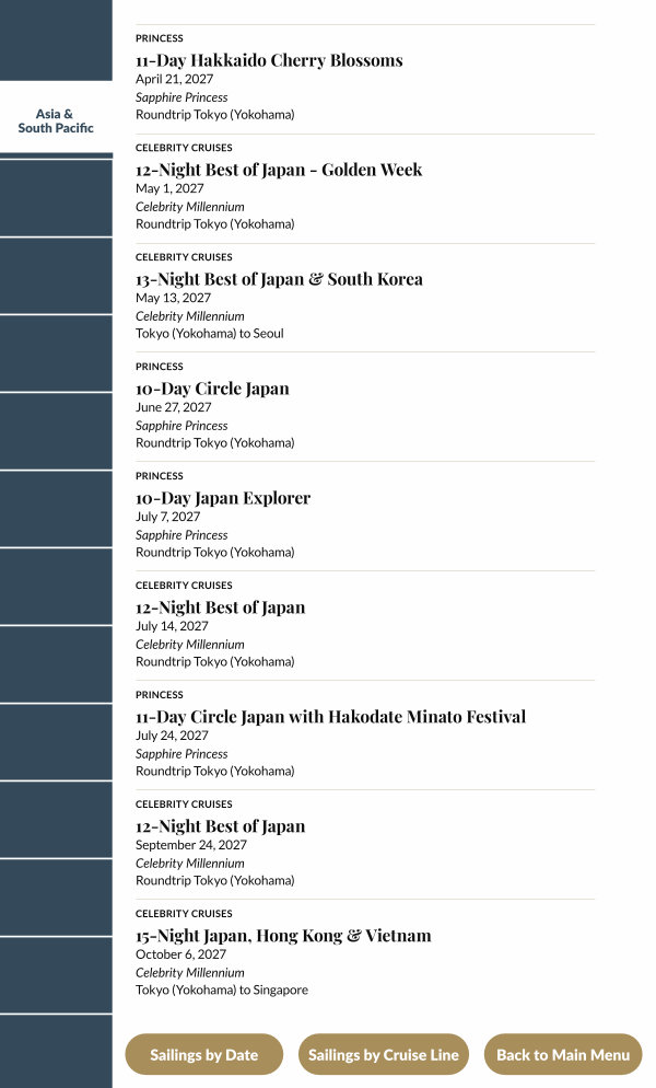 Sailings by Cruise Line |