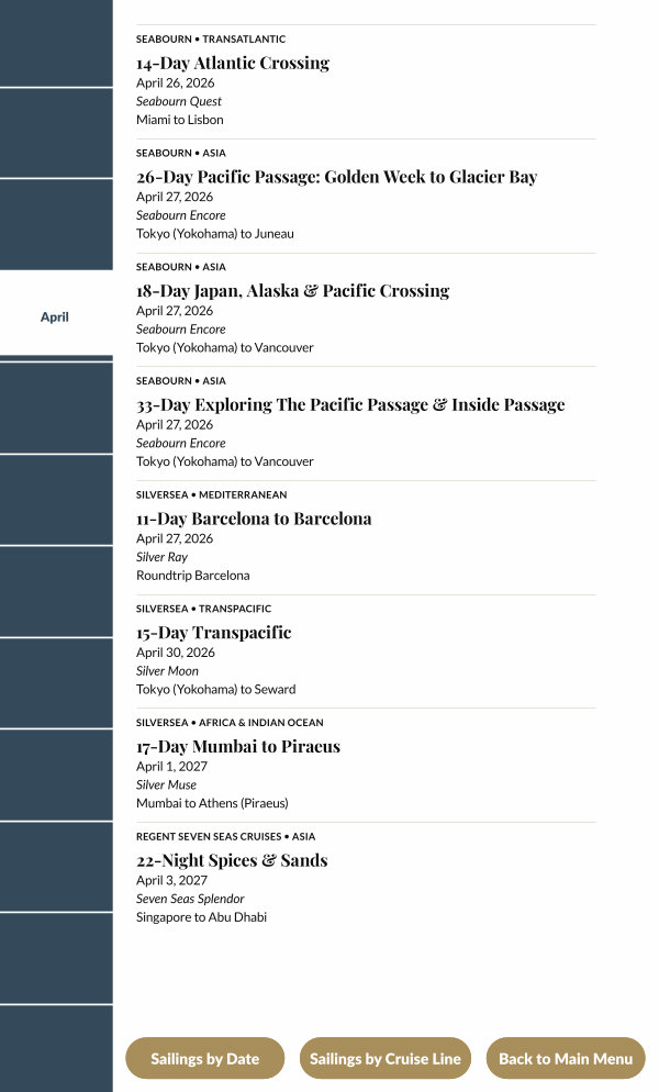 April 27, 2026 Seabourn Encore Tokyo( Yokohama) to Vancouver