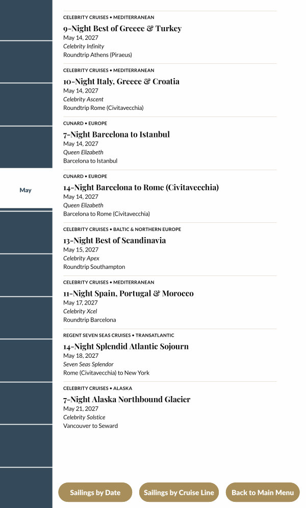 May 14, 2027 Celebrity Infinity Roundtrip Athens( Piraeus)