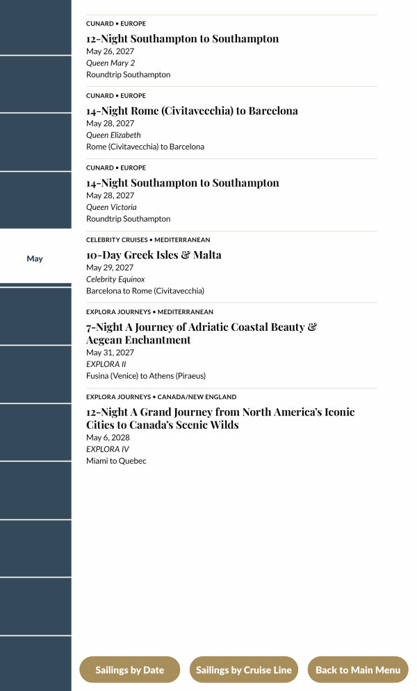 Sailings by Cruise Line