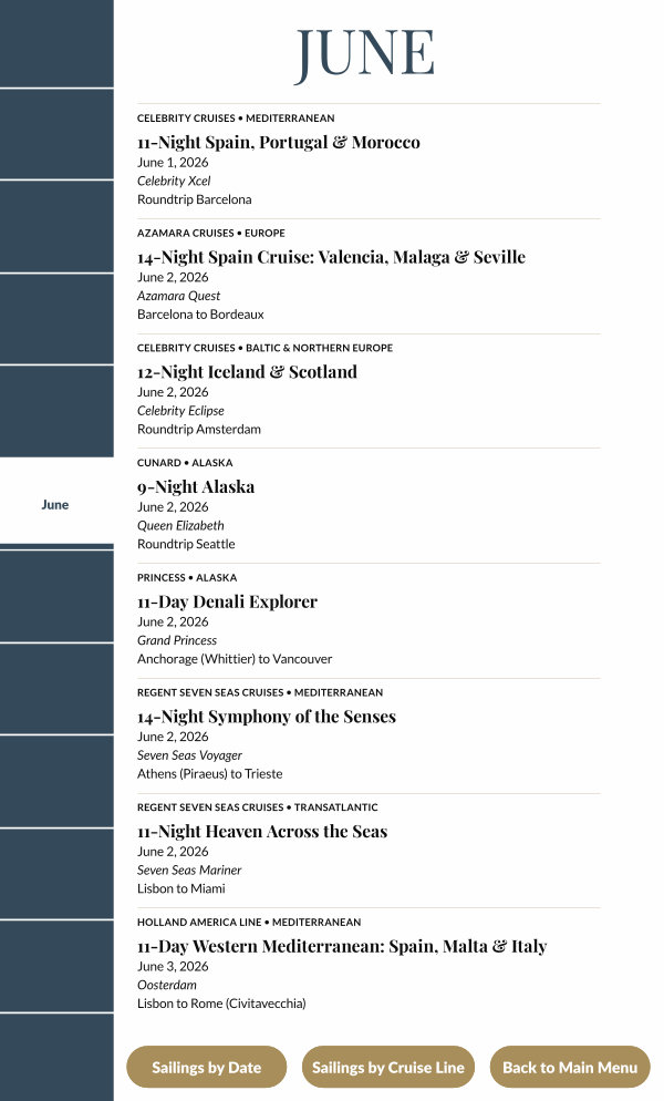 June 2, 2026 Seven Seas Mariner Lisbon to Miami