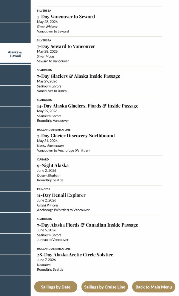 May 28, 2026 Silver Whisper Vancouver to Seward