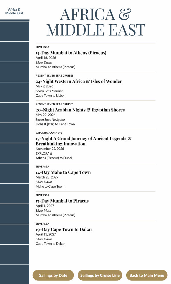 May 22, 2026 Seven Seas Navigator Doha( Qatar) to Cape Town