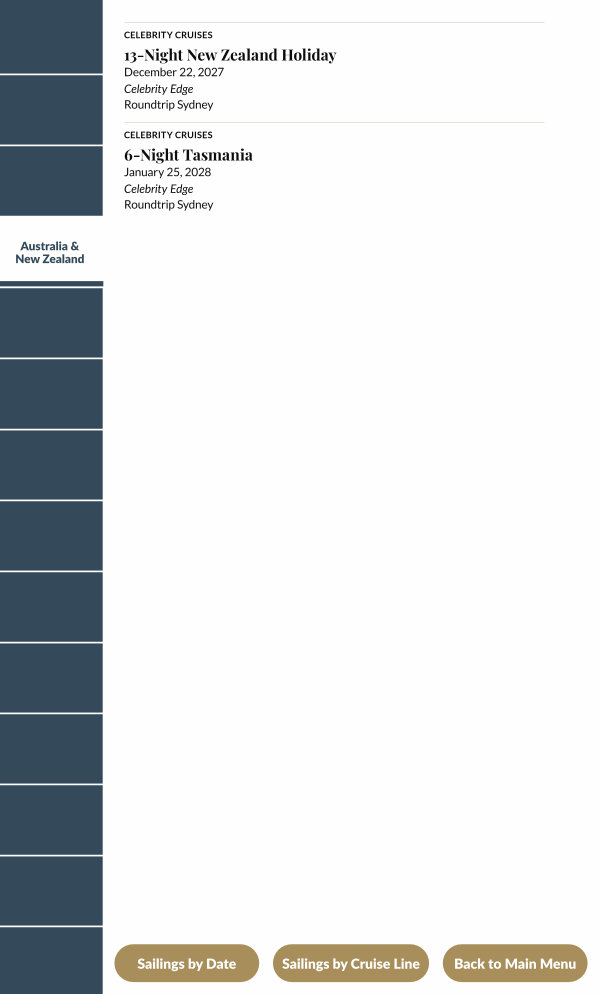 Sailings by Cruise Line |