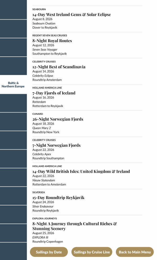 Sailings by Cruise Line |