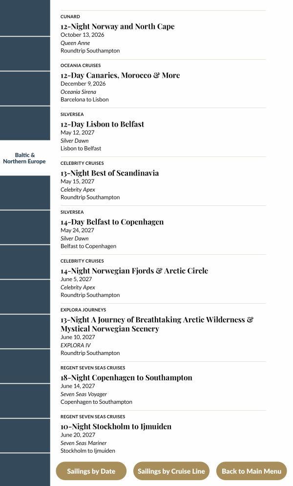 Sailings by Cruise Line |