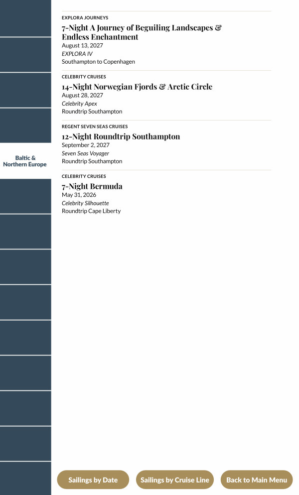 August 13, 2027 EXPLORA IV Southampton to Copenhagen