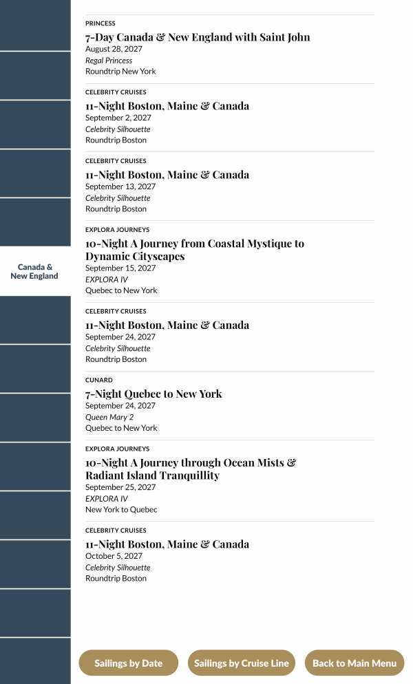 Sailings by Cruise Line