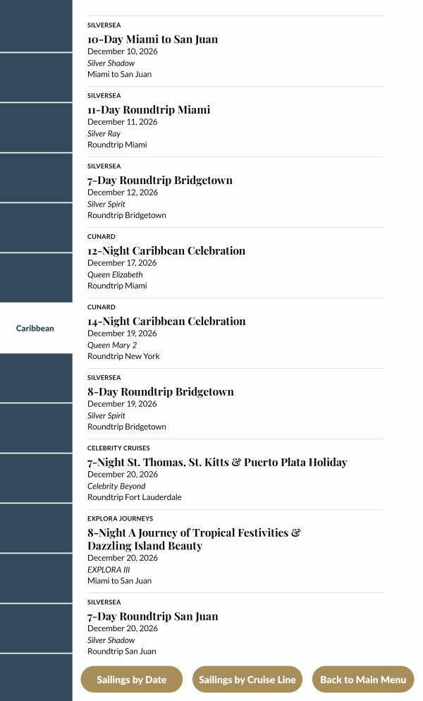 December 12, 2026 Silver Spirit Roundtrip Bridgetown