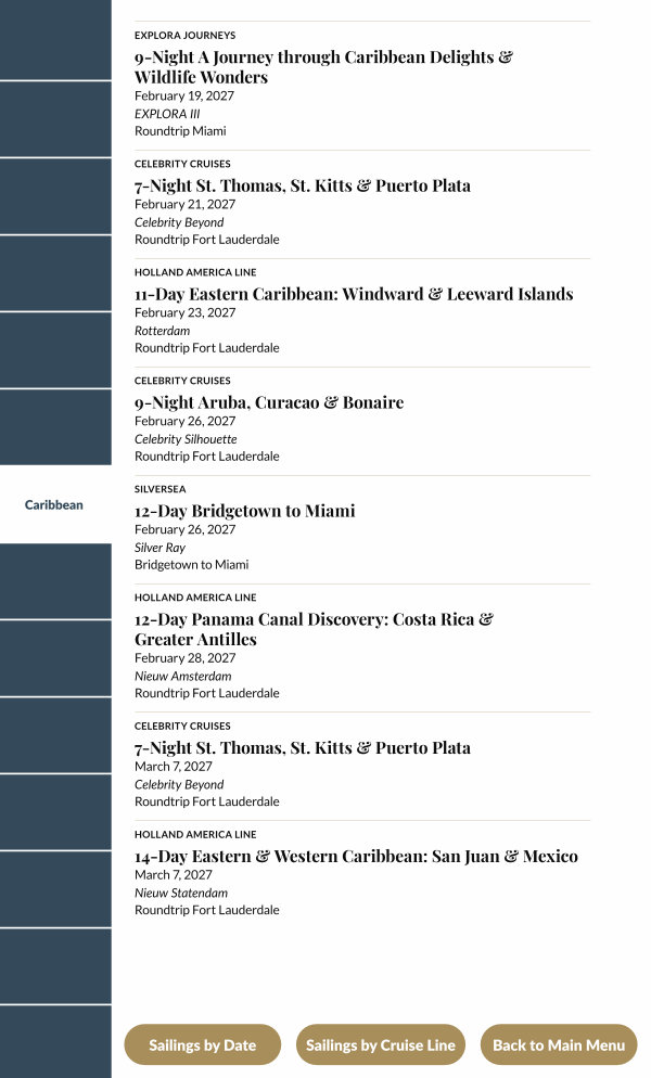 Sailings by Cruise Line